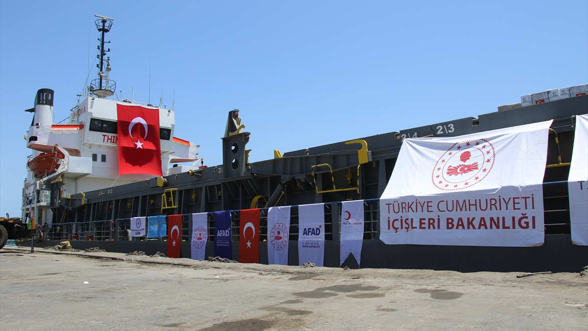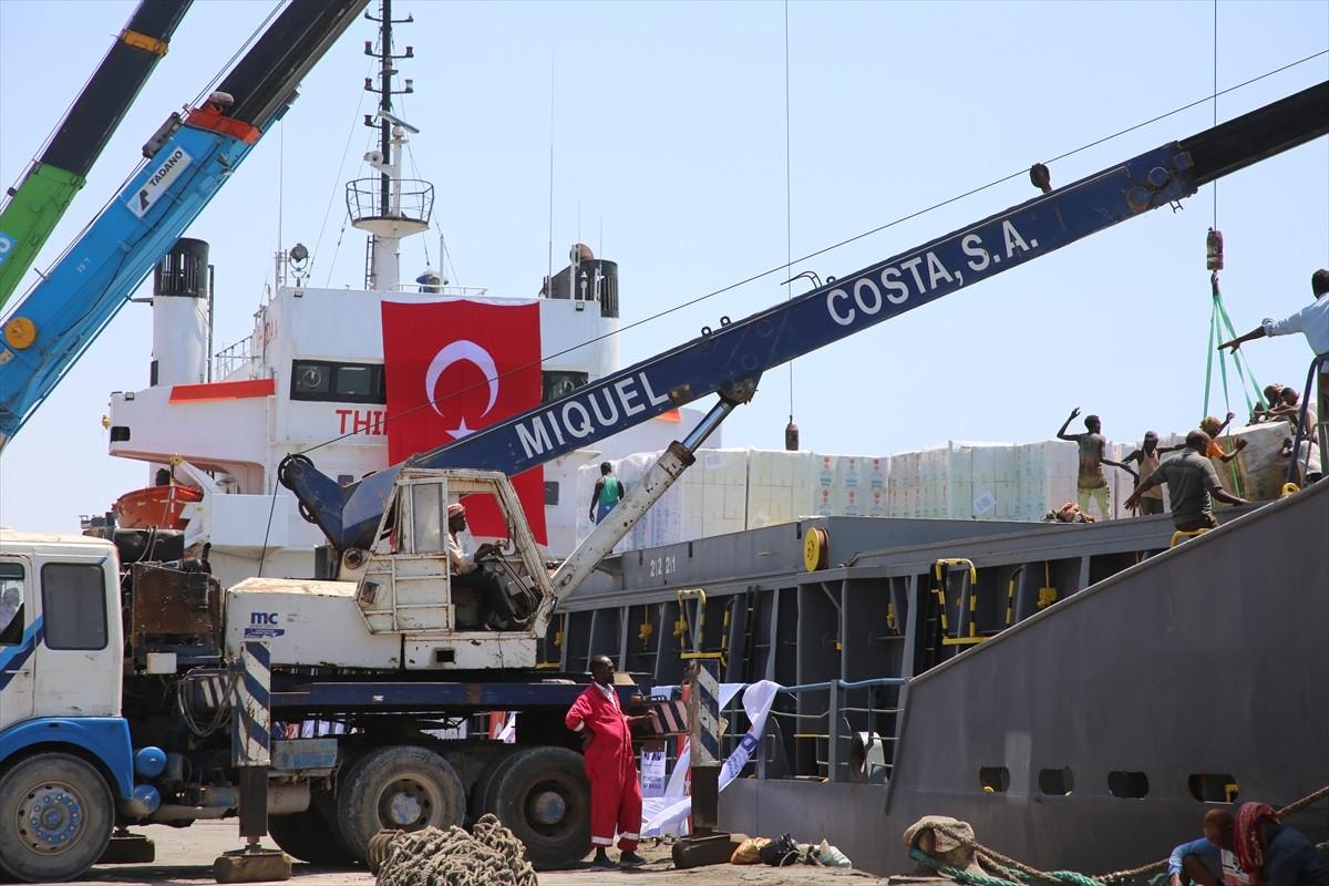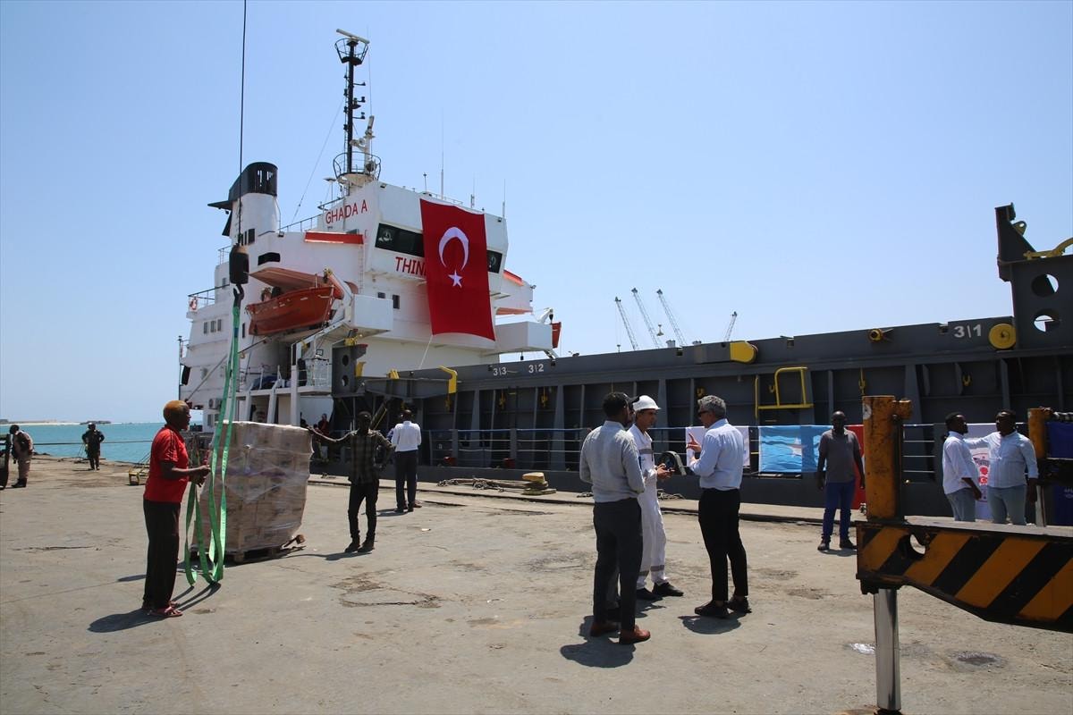 Türkiye'den gönderilen gıda, çadır ve hijyen malzemeleri ile dolu gemi, Somali'nin başkenti Mogadişu'ya vardı.