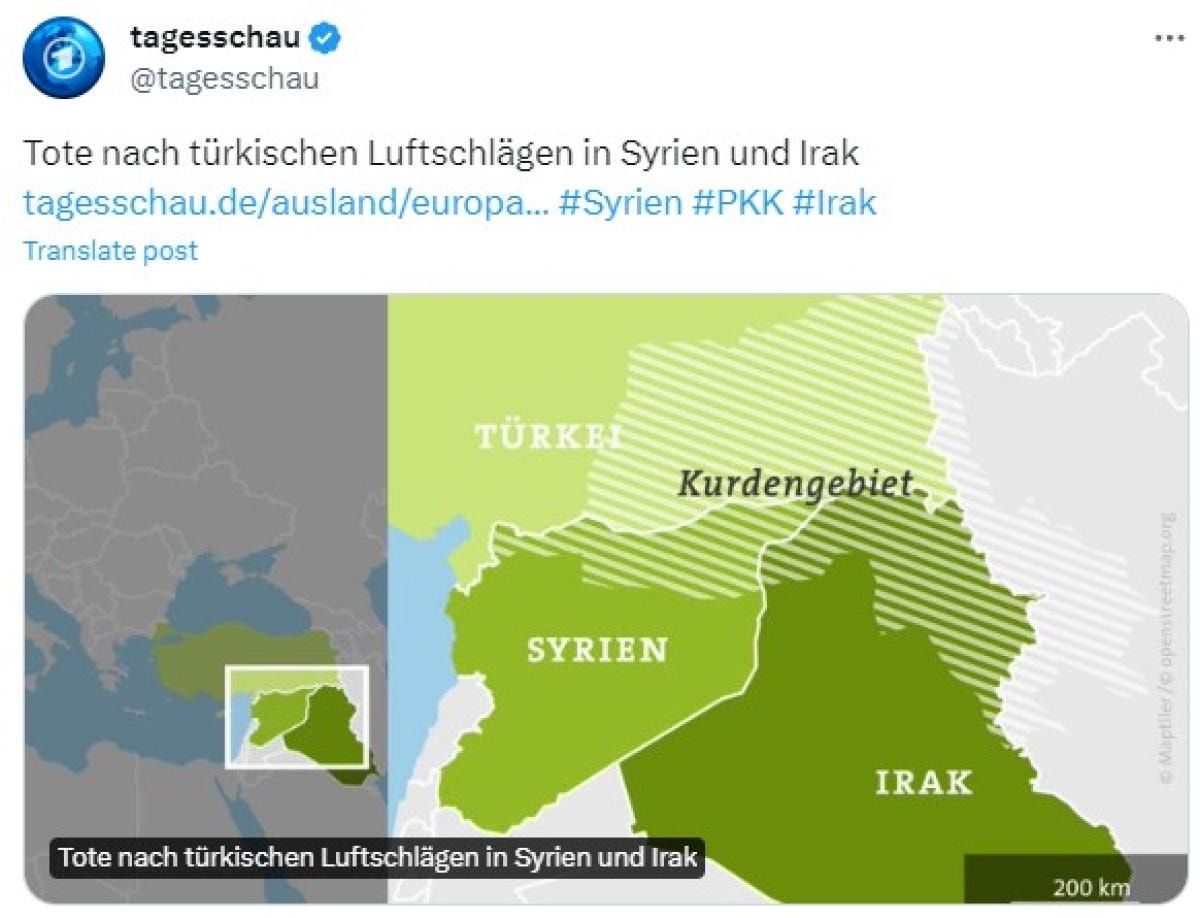 Almanya'nın kamu yayıncısı ARD ise Türkiye'nin bölgedeki operasyonlarıyla ilgili haberinde sadece kullandığı görselle değil, seçtiği ifadelerle de tepki topladı.