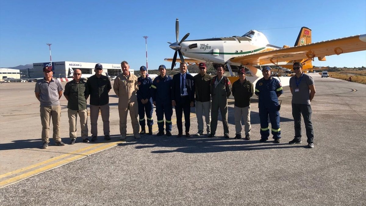Türkiye'nin yangınlarla mücadele kapsamında gönderdiği 2 yangın söndürme uçağıyla 1 helikopter Yunanistan'a ulaştı.