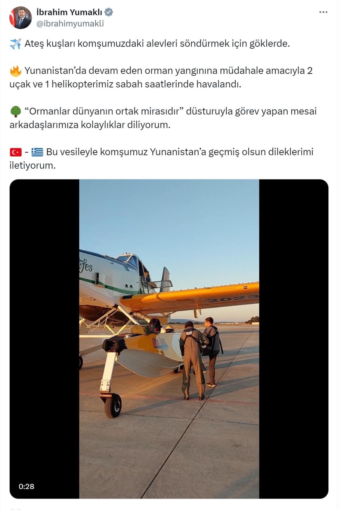 Şimdi Yunanistan haftalardır yanıyor, onlar bununla ilgili yardım talep ettiler biz de 2 uçak 1 helikopter, geçen sene de göndermiştik, gönderdik. Şu anda orada arkadaşlarımız.