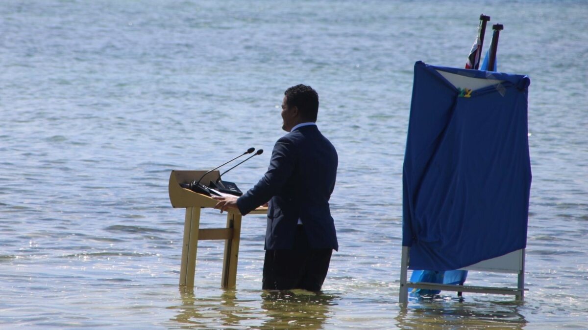 Tuvalu Adalet, İletişim ve Dışişleri Bakanı Simon Kofe, COP26'ya denizin içinde kurulan kürsüden seslenerek, ada ülkesinin iklim değişikliğinden etkilenen ülkeler arasında ilk sıralarda geldiğini göstermek istedi.