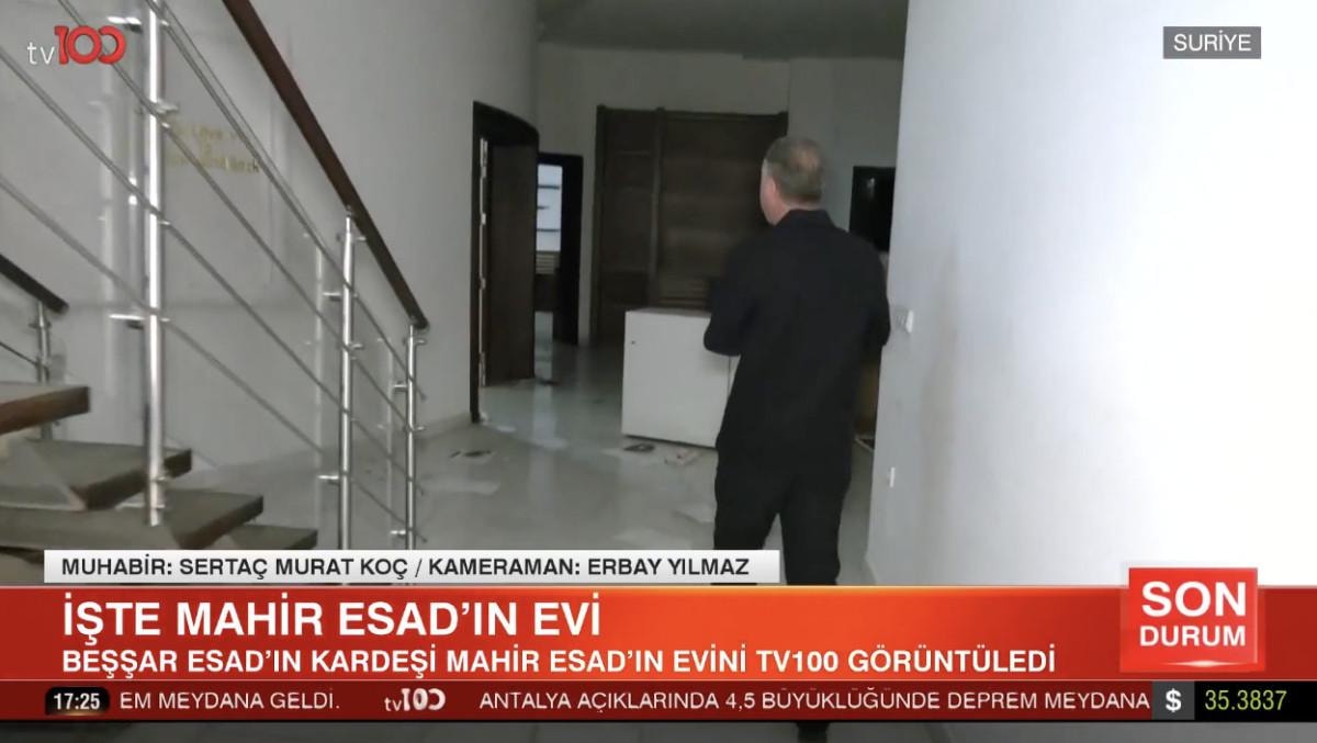 Yaşananlar sonrası dikkat çeken gelişmeler yaşanırken son olarak, tv100 muhabiri Sertaç Murat Koç, Beşar Esad'ın kardeşi Mahir Esad’ın evini ekranlara getirdi.