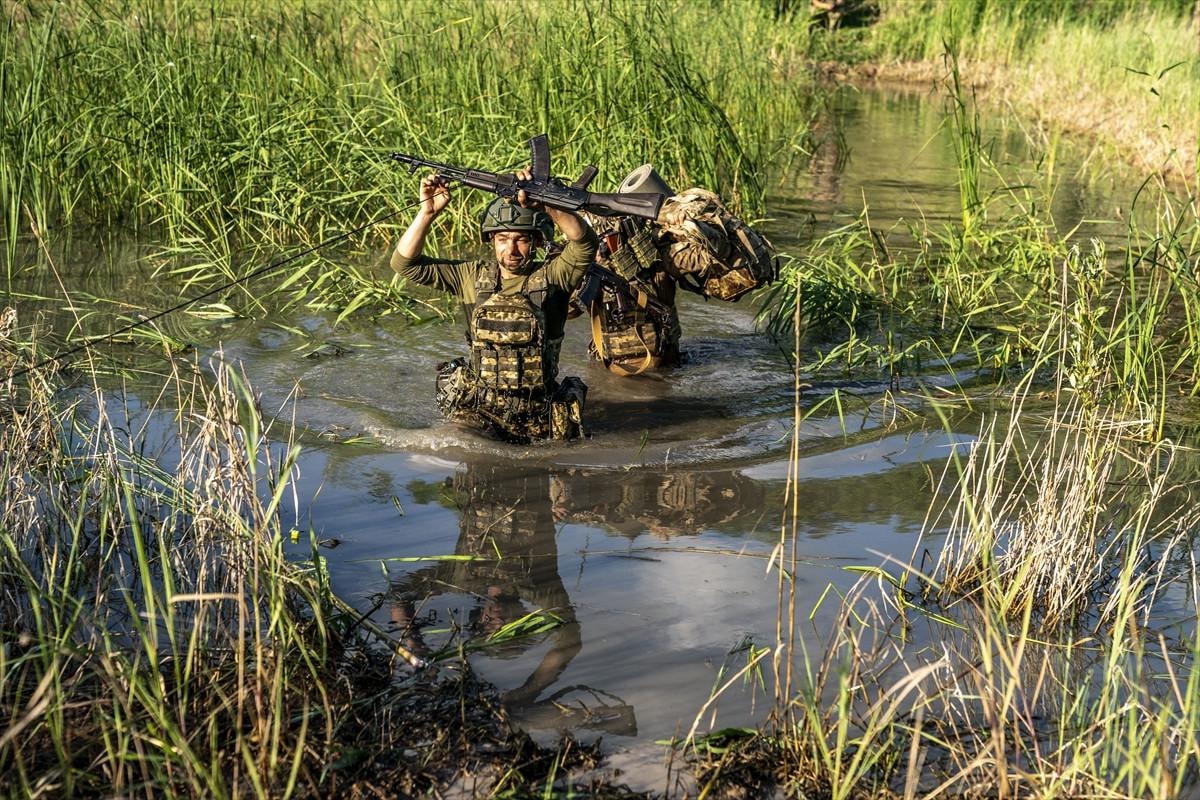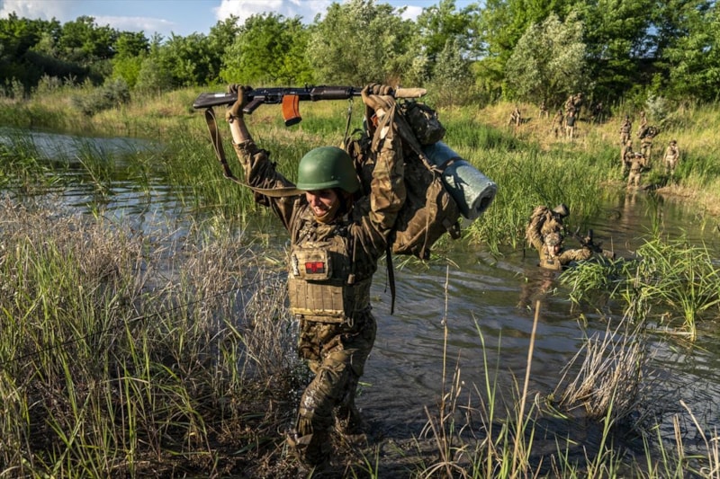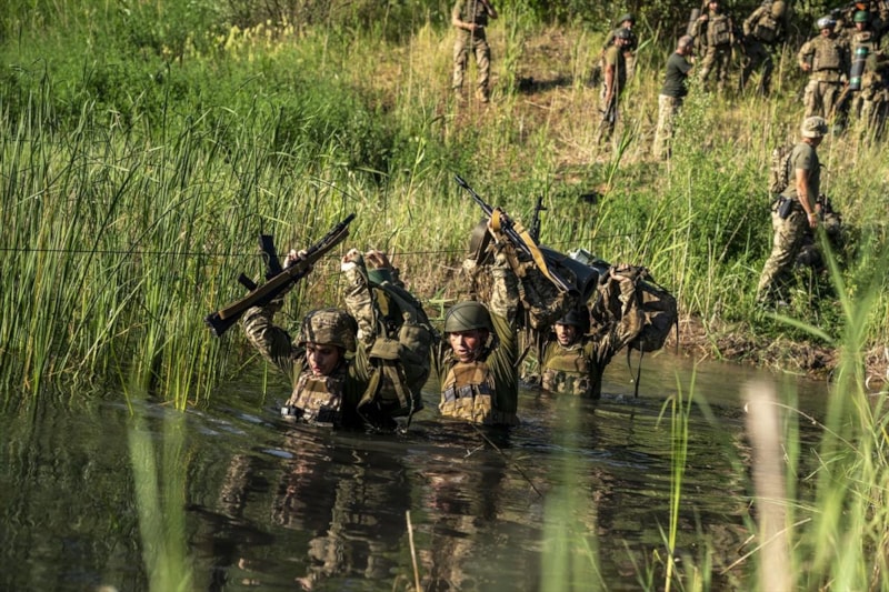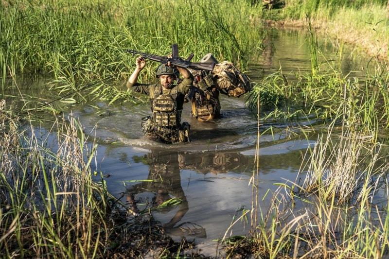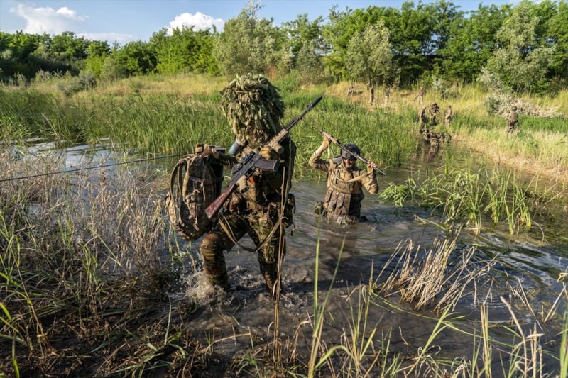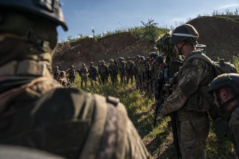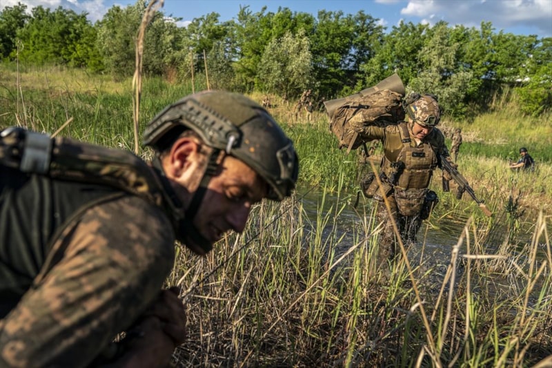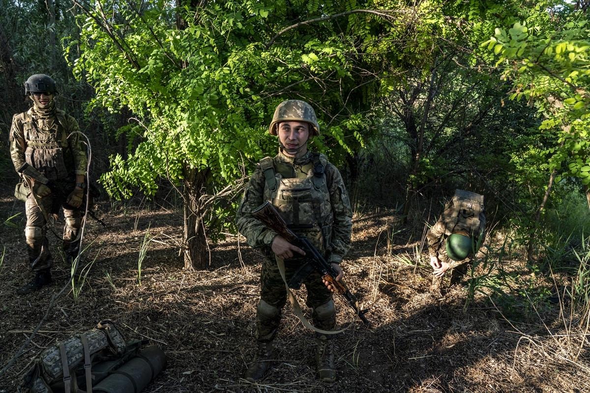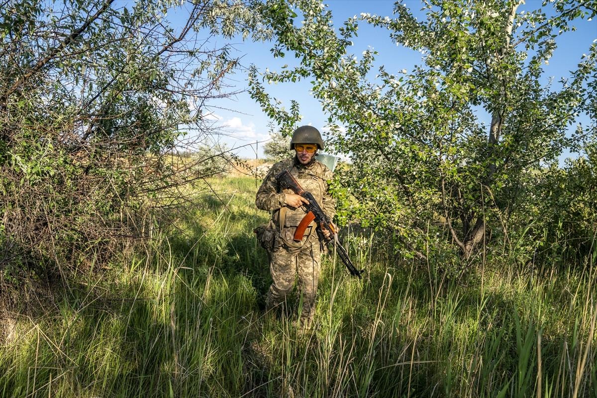 Ukrayna Ordusu 22. Piyade Tugayı askerleri, Donetsk Oblastı’nda, Chasiv Yar yönünde taktik siper eğitimini sürdürürken objektiflere yansıdı.