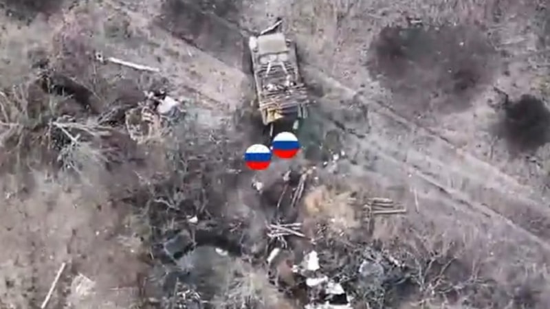 Drone görüntülerine yansıyan anlarda Rus ordusu mensuplarının, kendilerine yönelik hava saldırılarından kurtulmaya çalıştığı görülüyor.