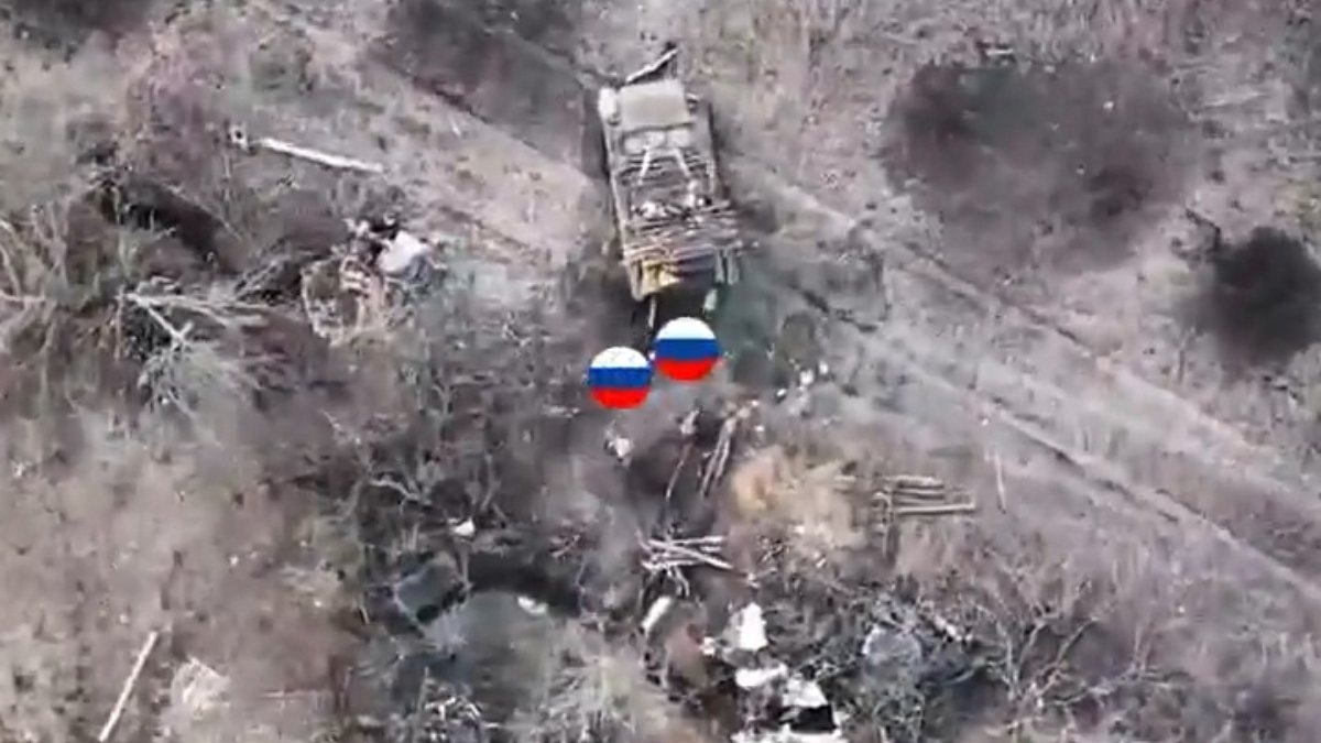 Rusya ordusuna bağlı askerlerin bulunduğu noktaya düzenlenen saldırı anları havadan kaydedildi.