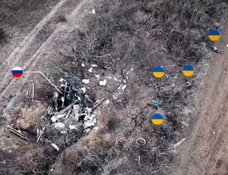 Rus askerlerin girdiği mevziye saldırı düzenlediler. O sırada drone kamerası kayıttaydı.