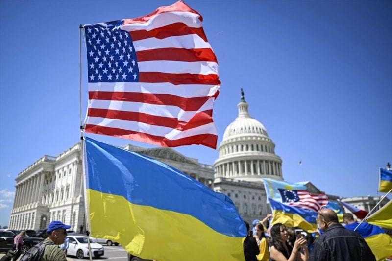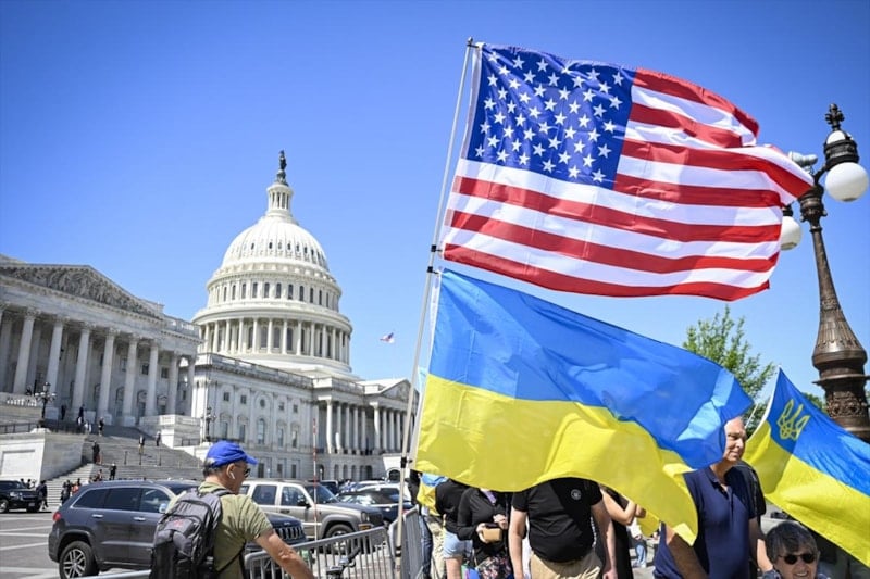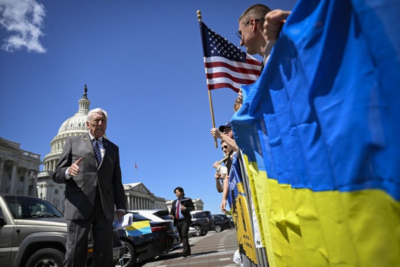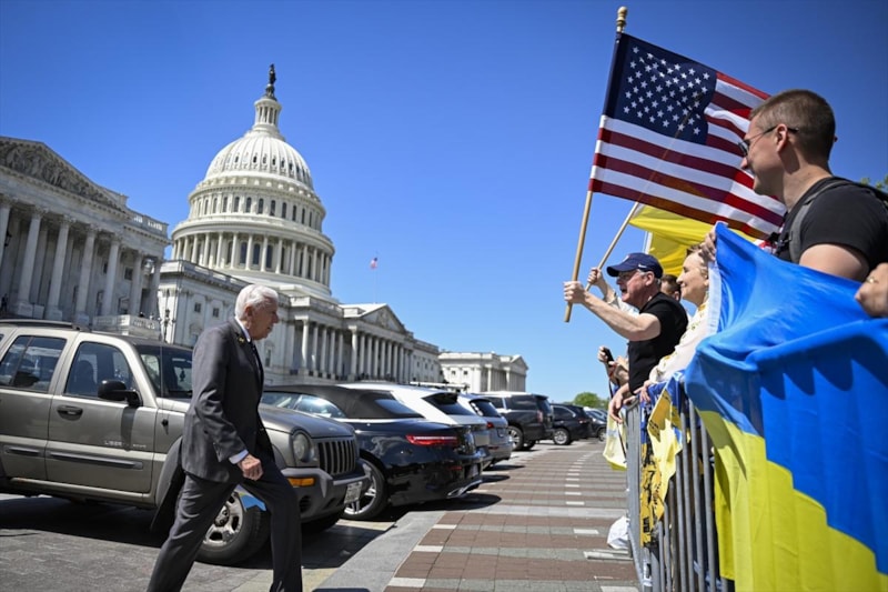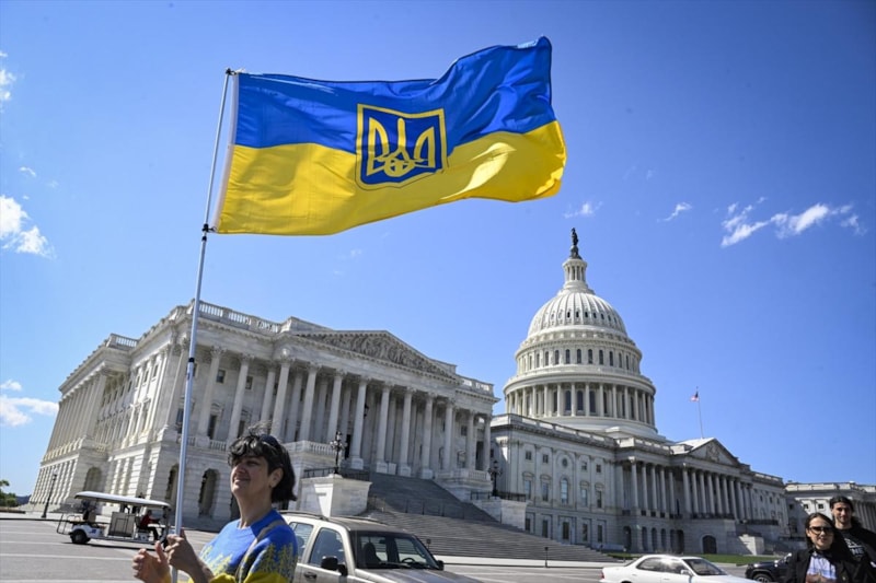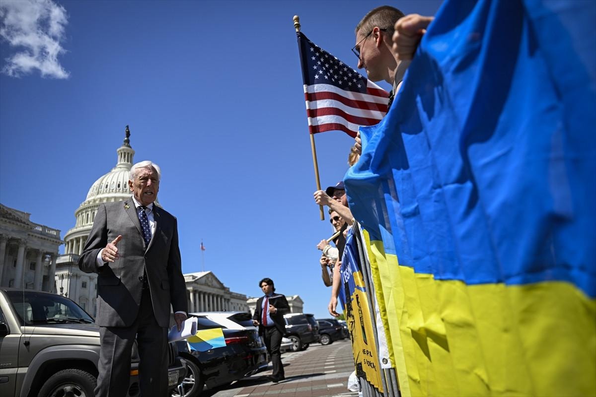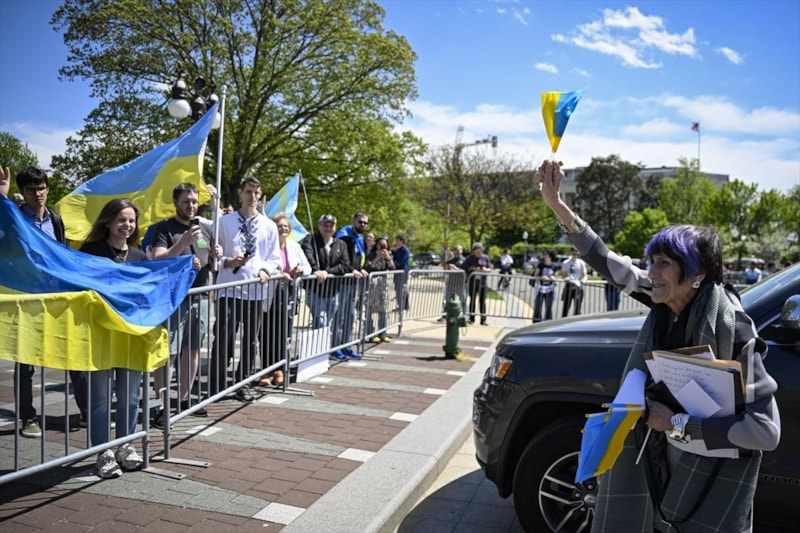 Ukrayna'ya savunma yardımını da içeren ABD dış yardım tasarısının onaylanması, başkent Washington DC'deki Kongre Binası önünde kutlandı.