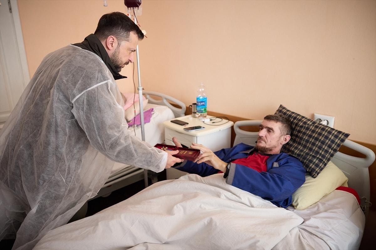 Ukrayna Devlet Başkanı Vladimir Zelensky, yaralı askerleri ziyaret etti.