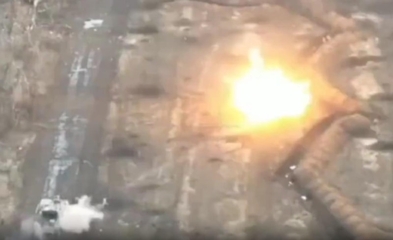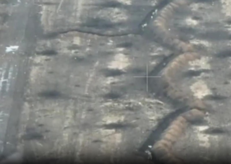 Rus askerlerinin tespit edildiği siper ateş altına alındı. Çatışma, havadan saniye saniye görüntülendi.