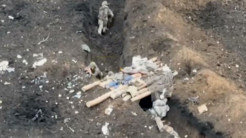 Rus askerleri ise siperde ilerleyerek Ukrayna askerlerinden kaçmaya çalıştı. Bir süre sonra Ukraynalı askerlerden biri sipere girerek arama faaliyeti gerçekleştirdi.
