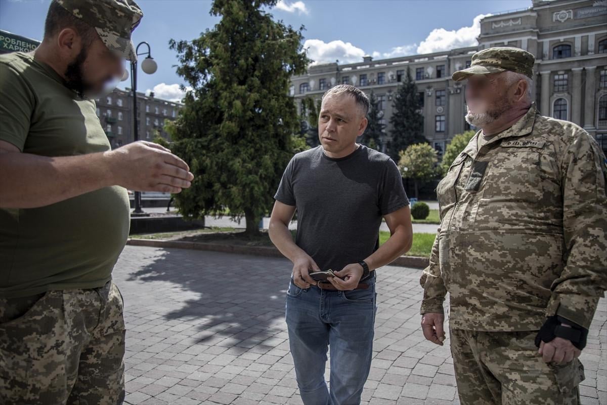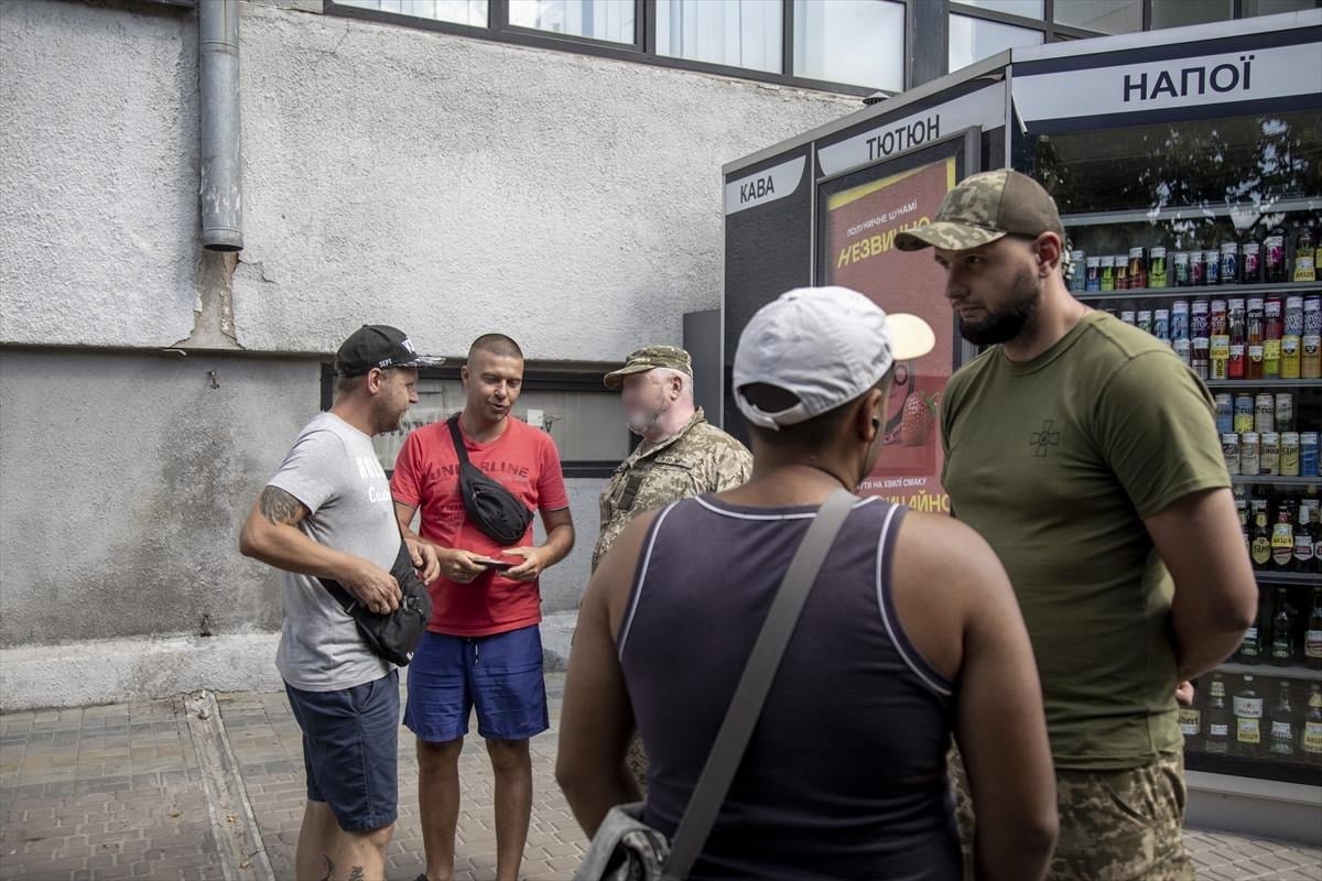 Ukrayna’nın Harkiv kentinde, Harkiv Askerlik şubesi (TCC) görevlileri, askere çağrılacak erkekleri tespit etmek için sokaklarda devriye gezip kimlik kontrolü yapıyor.