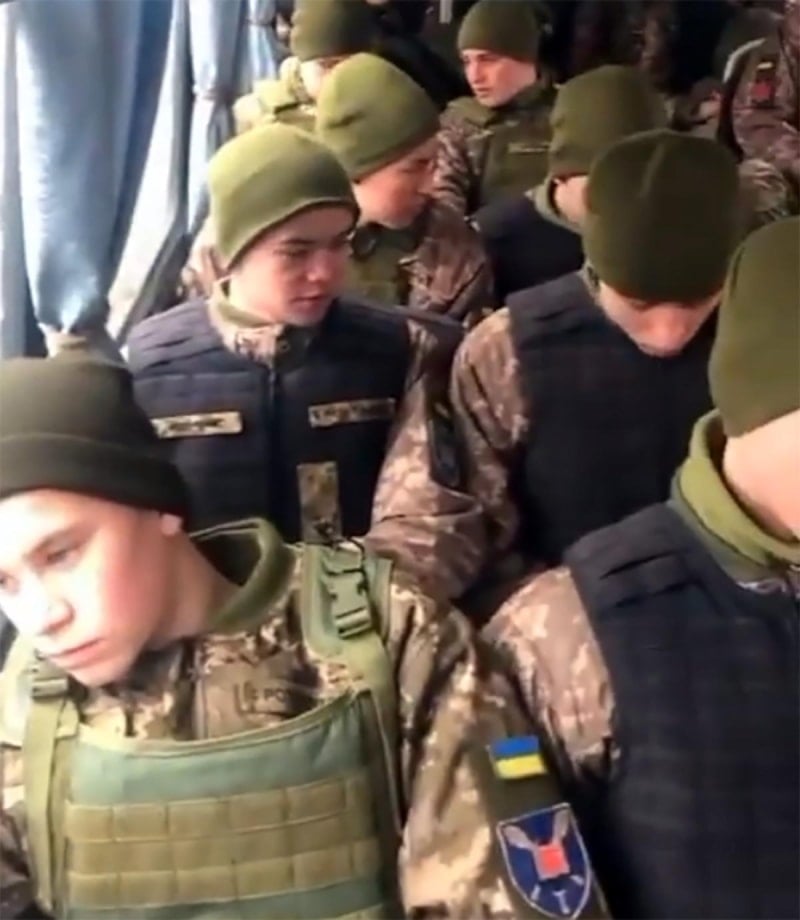 Ukrayna bayraklı askeri üniformalar giyen çocuklar görüntülendi.