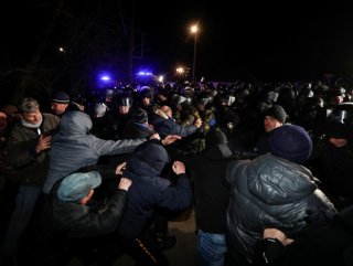 Söz konusu 72 kişinin havaalanından 7 otobüsle Poltava bölgesi Novie Sanjarı kentindeki bir sağlık merkezine nakledilişi sırasında bir grup Ukraynalı, otobüslerin şehre girişini engellemeye çalıştı.