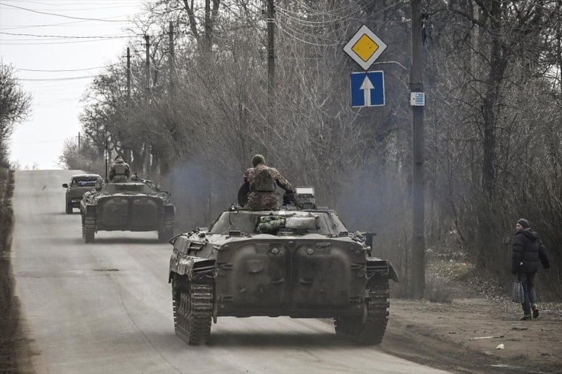 Rus ordusunun üç taraftan kuşattığı, çevredeki köprüler havaya uçurulduğu için Bahmut'a giden tek yolun geçtiği Çasov Yar'da Ukrayna ordusunun yoğun hareketliliği gözleniyor.