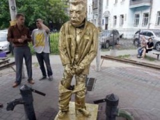 Ukrayna'da aşırı milliyetçiler, başkent Kiev'de, milliyetçi kimliğiyle bilinen batıdaki Lvov kentinde ve Odessa'da, Sovyet eski lideri Stalin'i işerken tasvir edildiği heykeller dikti.