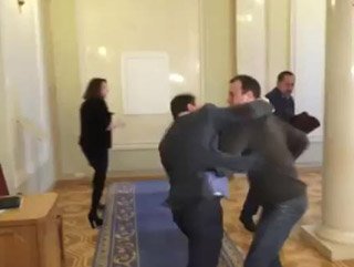 Ukrayna'da yaşanan siyasi gerginlik milletveillerine yansıdı. İki farklı partinin milletvekilleri bir tasarının görüşüldüğü genel kurul salununu terk edip meclis salonunda yumruk yumruğa kavga etti. Milletvekillerinin kavga ettiği görüntüler boks maçlarını aratmadı.