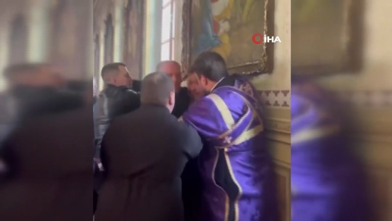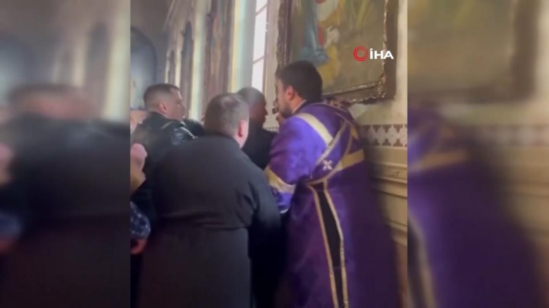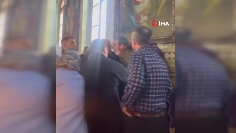 Hmelnitski bölgesindeki Moskova Patrikhanesi'ne bağlı bir kilisede pazar ayini sırasında kavga çıktı.