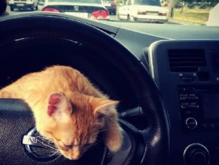 Ukrayna’nın Harkov kentinde Alexander Zigula adlı taksi sürücüsü, kız arkadaşı ile birlikte otomobilinin lastiklerini değiştirmek için gittiği tamirhanede bir kedi buldu.