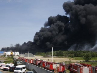 Ukrayna'nın başkenti Kiev yakınlarındaki yakıt deposunda pazartesi günü başlayan ve halen tamamen söndürülemeyen yangının havadan çekilen görüntüleri ortaya çıktı.