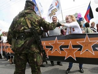 Donetsk'te, bölgenin özerkliğinin belirlenmesine ilişkin geçen yıl 11 Mayıs'ta yapılan ve Ukrayna'nın tanımadığı referandumun yıl dönümü dolayısıyla tören düzenlendi.
