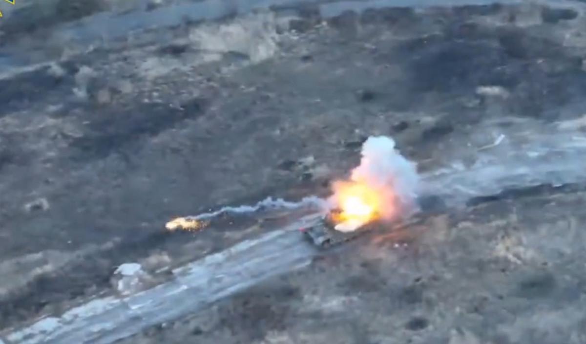 Drone kameralarındaki görüntüler, farklı noktalardaki Rus askerlerine ait araçlara yaklaşma anlarını gösteriyor.