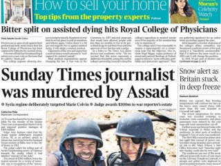 İngiliz Times gazetesinin manşetinde, gazetenin Suriye'de faaliyet gösteren muhabiri Marie Colvin'in, Esad rejimi tarafından hedef alınıp öldürüldüğü yazıldı.
