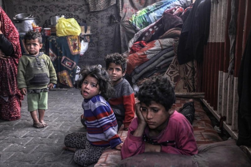 Gazze Şeridi'nde yaklaşık 1,7 milyon Filistinlinin yerinden edildiği, bunların yarısını suya, yiyeceğe, yakıta ve ilaca yeterli erişimi olmayan çocukların oluşturduğu ifade edildi.