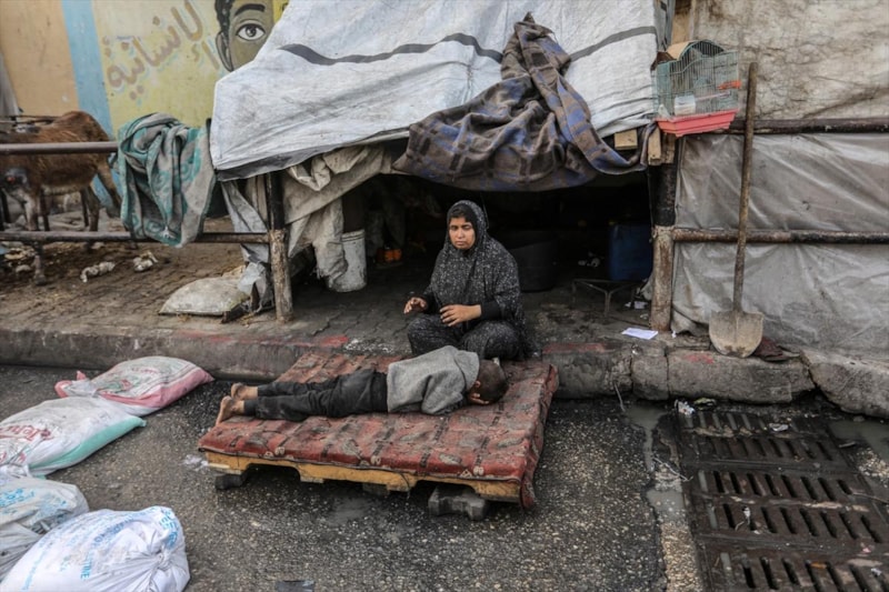 İsrail’in saldırılarından kaçarak Refah kentine sığınan Filistinliler, çadır kentlerde yer bulamadıkları için yol kenarı ve parklarda kurdukları derme çatma çadırlarda yaşam mücadelesi veriyor.