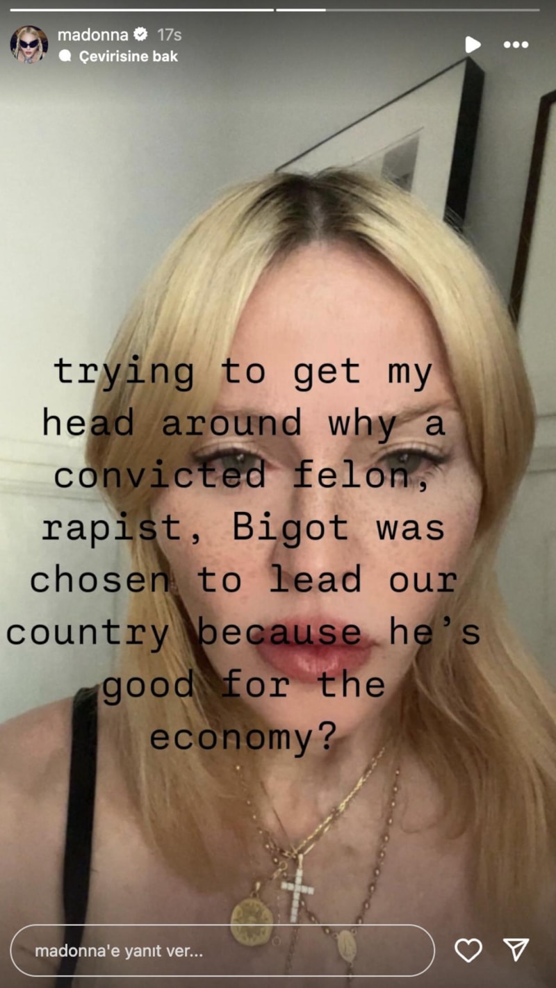 Madonna, Donald Trump'ın yeniden seçilmesine öfkesini dile getirerek sosyal medya hesabında şöyle dedi: