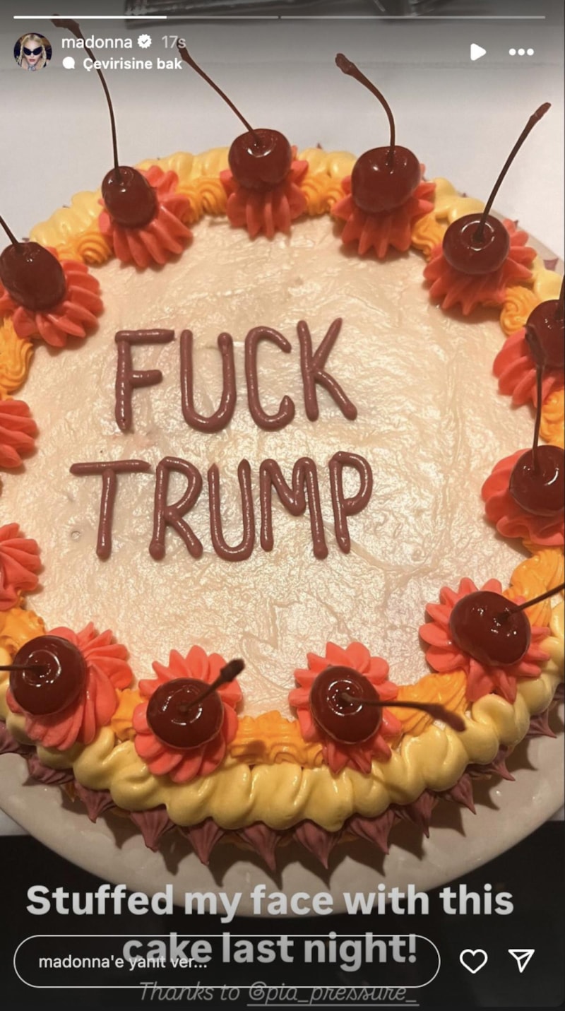 Üzerinde "Fuck Trump" yazılı bir pastanın fotoğrafını paylaşan Madonna, şu notu ekledi: