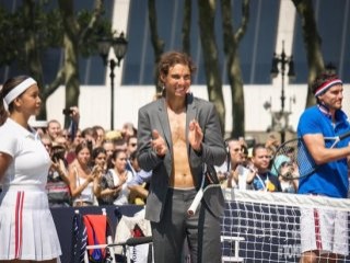 Hazır giyim sektöründe faaliyet gösteren bir şirket tarafından Manhattan'daki Bryant Park'ta kurulan tenis kortunda organize edilen etkinliğe takım elbiseyle katılan İspanyol tenisçi, söz konusu şirketin giyim markasının modelleriyle karşılaştı.