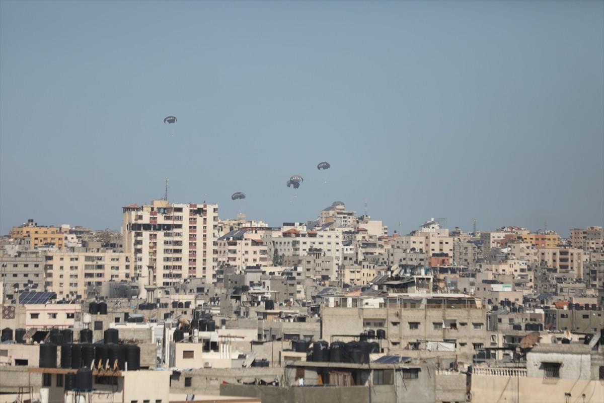 Ürdün ordusu, Gazze Şeridi'nin kuzeyinde bekleyen Filistinliler için havadan insani yardım indirdi.