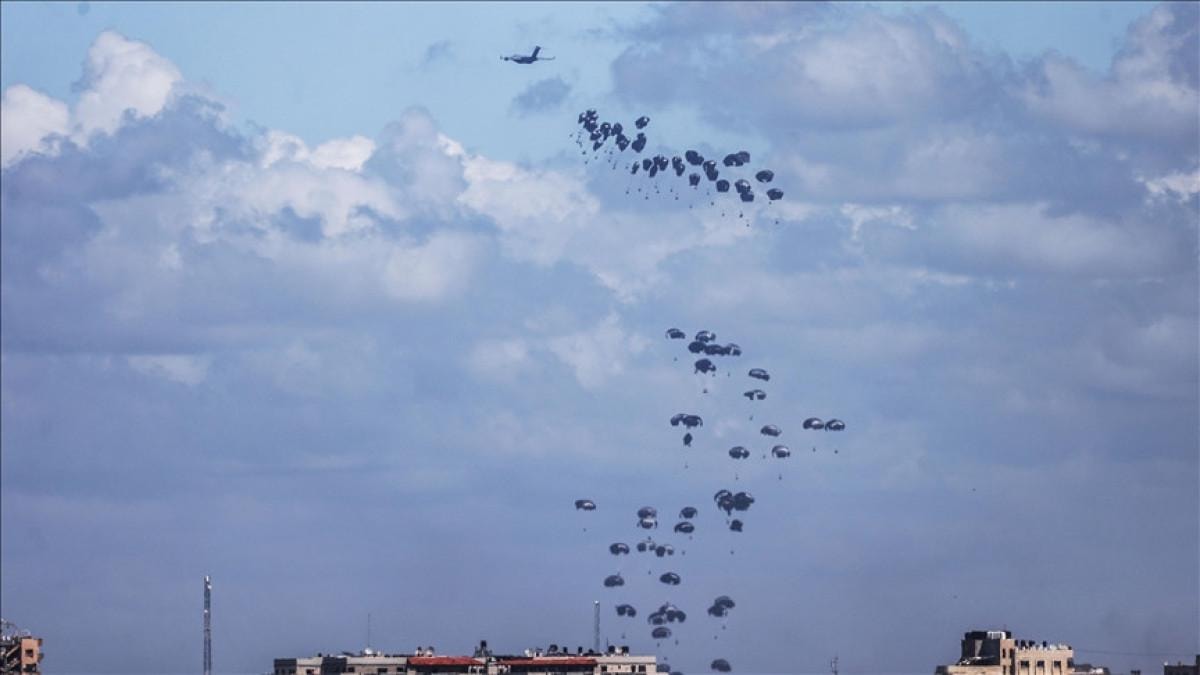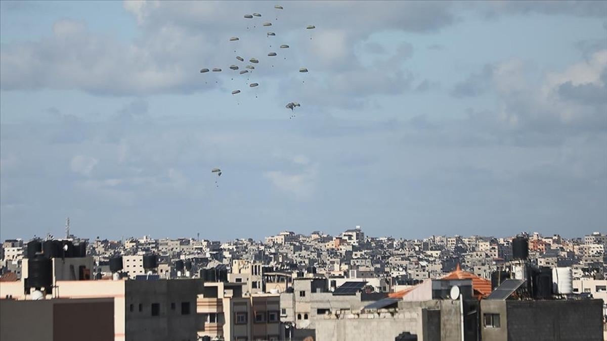 İsrail'in açlığı dayattığı Gazze Şeridi'ne daha önce havadan paraşütlerle atılan yardımların sivillerin üzerine düşerek can kaybına neden olduğu görülmüştü.