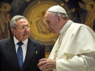Castro, sabah saatlerinde ilk olarak Vatikan'a giderek Papa Franciscus ile görüştü. Kübalı lider, görüşmenin ardından yaptığı açıklamada, Papa'ya ABD ile ülkesinin 50 yıl aradan sonra geçen aralık ayında diplomatik ilişkileri yeniden başlatması ve yakınlaşması için gösterdiği çabadan ötürü teşekkür ettiğini söyledi. Castro, görüşmede Papa'ya Havana Kilisesi'ne ait 200 yıllık bir madalya hediye etti.Vatikan'a giden Castro'dan Katolik açıklaması