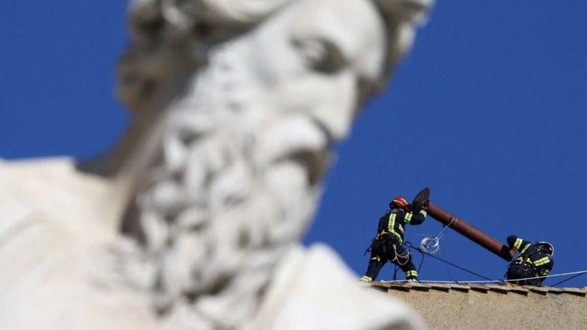 Francis'in halefinin seçileceği toplantı öncesinde Sistine Şapeli'nin çatısına baca monte etmek için çalışmalar da başladı.