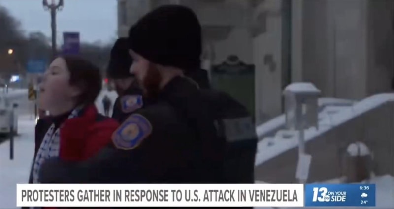 ABD'de, Amerikan yönetiminin Venezuela'ya müdahalesini protesto eden Jessica Plichta isimli genç kadın, eleştirilerini dile getirdiği röportajın ardından kameraların önünde tutuklandı.