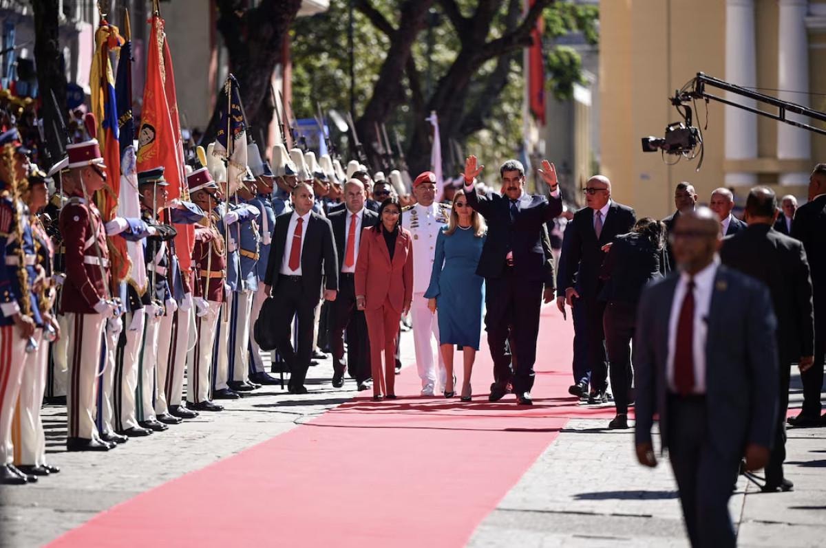 Ulusal Meclis Başkanı (AN) Jorge Rodriguez'in başkanlık kuşağını takdim etmesinin ardından Maduro, 2025-2031 dönemi için yemin ederek görevine resmen başladı.