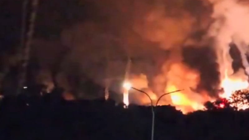Kentin üstünde dumanlar yükselirken şehrin güney kesiminde, büyük bir askeri üssün yakınında elektrik kesintisi yaşandı.