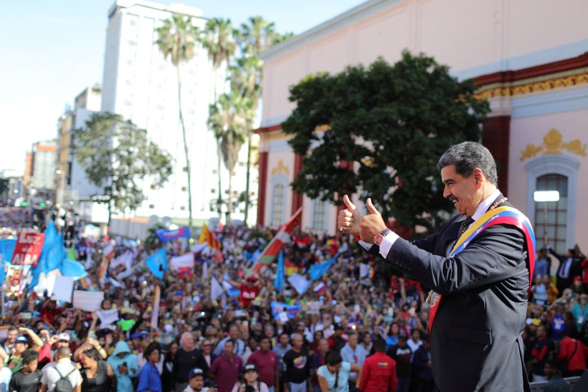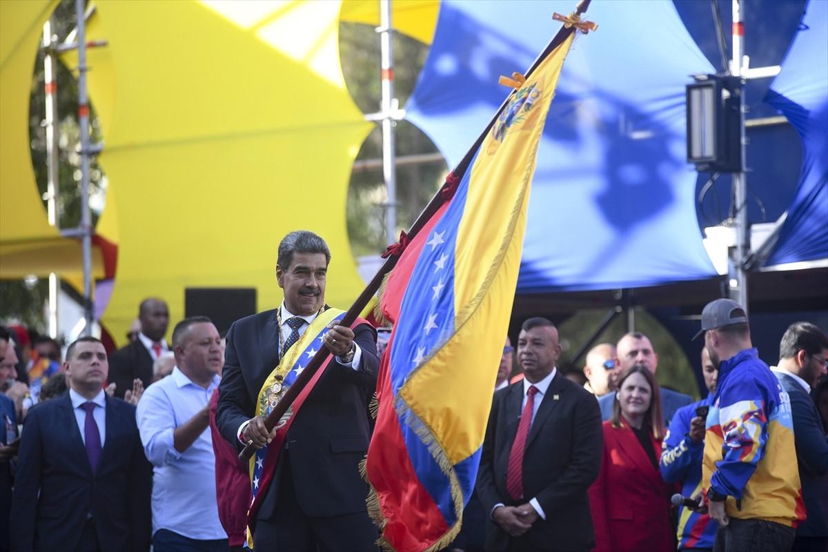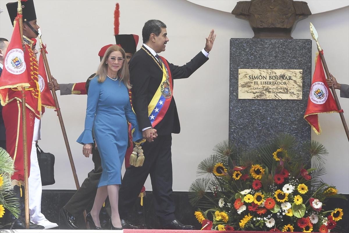 Venezuela’da başkent Caracas’taki Yasama Sarayı’nda düzenlenen yemin töreninin ardından binlerce destekçisini üstü açık arabada el sallayarak selamlayan Nicolas Maduro, açıklamalarda bulundu.