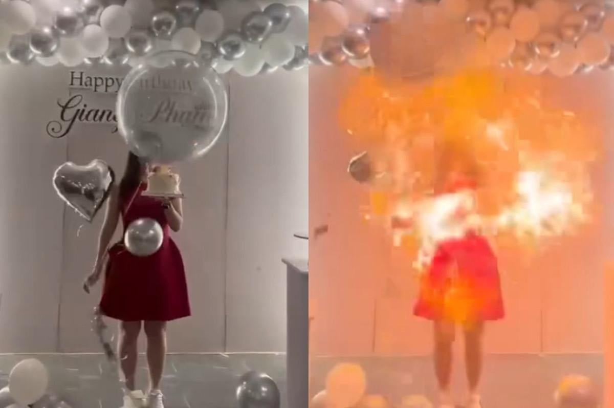 Giang’ın doğum günü kutlaması sırasında elinde tuttuğu pastanın mumları diğer elindeki hidrojen dolu balona temas edince patlama meydana geldi.
