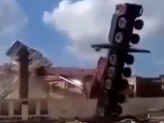 Mısır’da belediye tarafından sökülmesine karar verilen bir reklam tabelası için vinç getiriliyor. Tüm bağlantılar yapılıyor ve vinç tabelayı kaldırmak için operasyona başlıyor. Fakat tabelanın ağırlığını iyi hesaplanamadığı için vinç yan havaya kalkıyor ve pano binanın üzerine yıkılıyor.