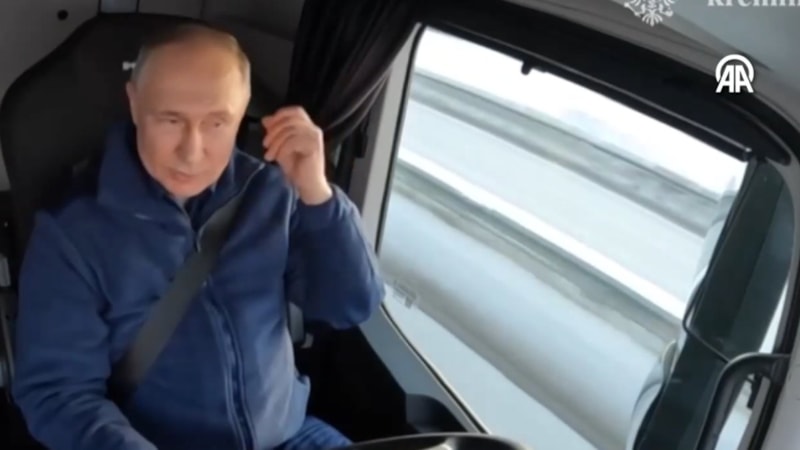 Putin'e yolculuğu sırasında diğer kamyonlar eşlik etti. Rus liderin, kendisine eşlik eden kişiyle yol boyu sohbet ettiği görüldü.