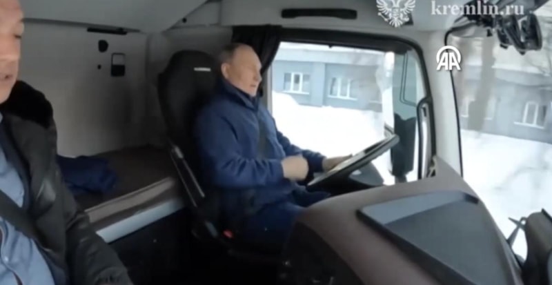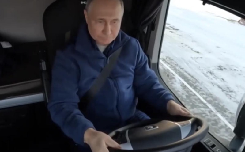Rus lider, bu defa kamyon koltuğuna geçti.
