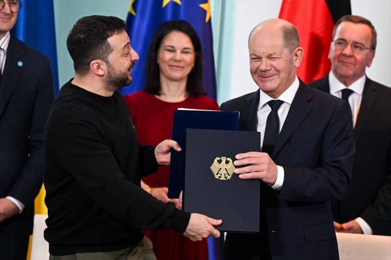 Anlaşmanın ayrıntıları kamuoyuna açıklanmadı. Rusya ile savaş üçüncü yılına yaklaşırken Zelensky, daha fazla askeri destek sağlama amacıyla Almanya ve Fransa'yı ziyaret ediyor.