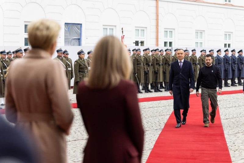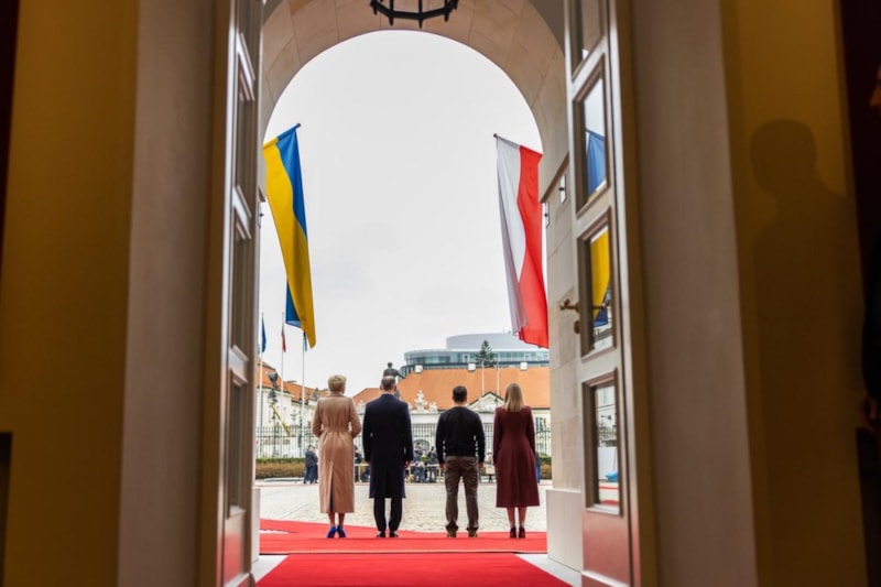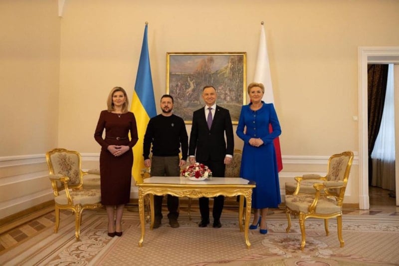 Cumhurbaşkanı Andrzej Duda ile bir araya gelen Zelensky yaptığı paylaşımda, “Zelenska ile birlikte Polonya'ya önemli bir ziyaret gerçekleştiriyoruz. Ukrayna'nın gerçek fikirdaşları olan Sayın Cumhurbaşkanı Andrzej Duda ve First Lady Agata Kornhauser-Duda ile tekrar bir araya gelmekten memnuniyet duyuyorum. Ukrayna-Polonya projelerimiz ve girişimlerimiz konusunda ortak toplantılar yapmayı dört gözle bekliyoruz.” dedi.