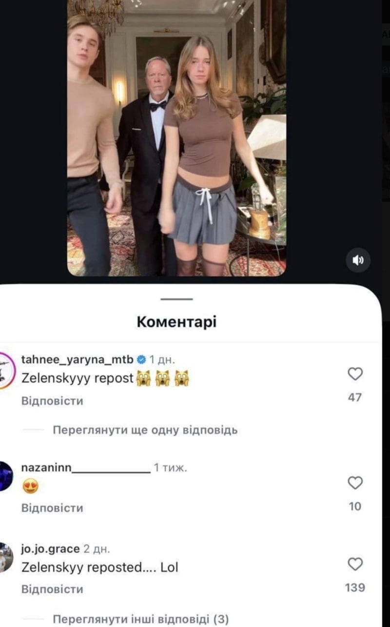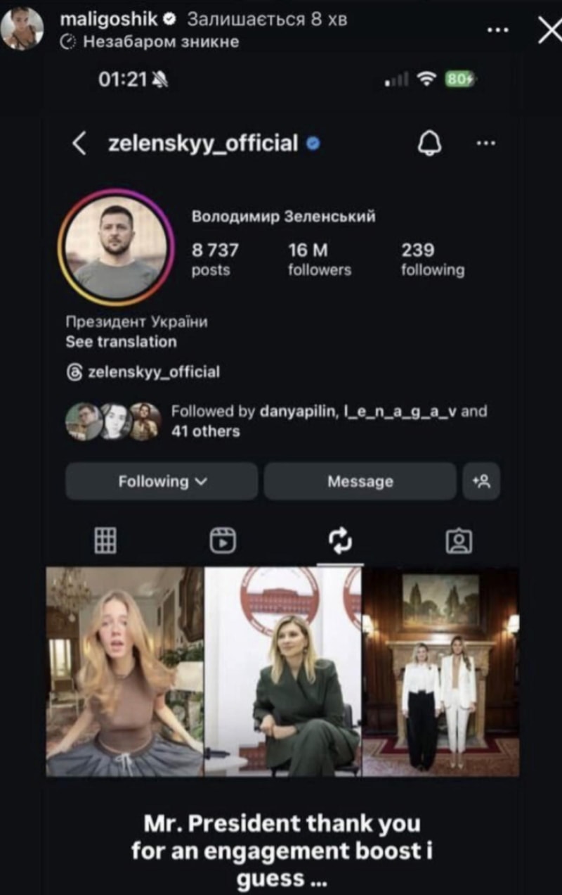Zelensky, sosyal medya platformu Instagram'da Onlyfans modeli Anna Maligon'a ait bir paylaşımı yeniden gönderdi.