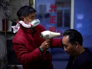 Kentte bir berber dükkanında kaydedilen görüntülerde 54 yaşındaki Yang Guangyu'nun, müşterisini traş ederken taktığı maske dikkat çekti.