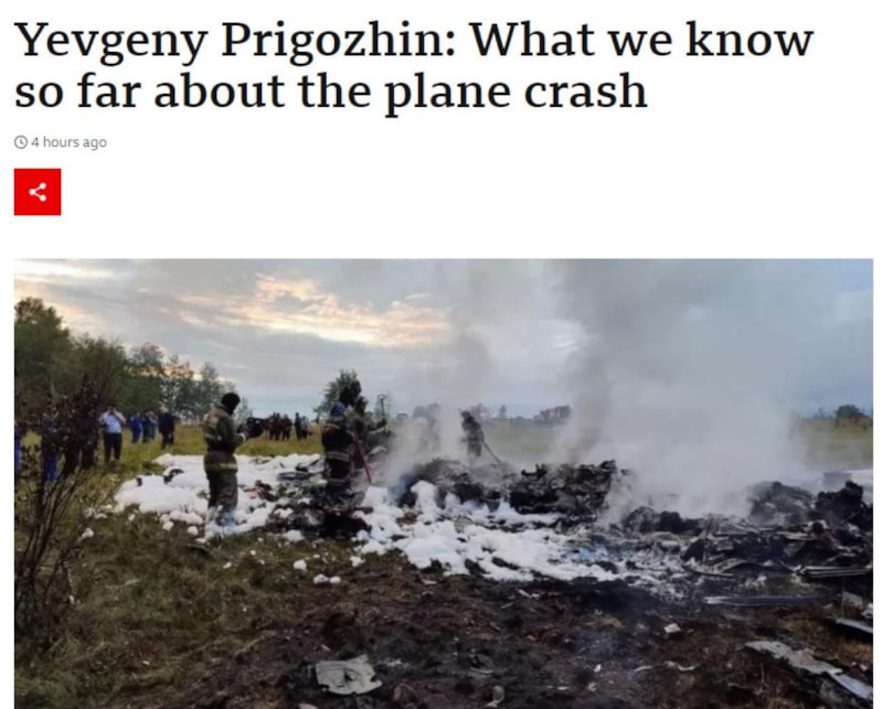 İngiltere merkezli BBC, Wagner paralı asker şefi Yevgeniy Prigojin'in öldüğünün tahmin edildiğini belirttiği haberinde şunlara yer verdi: