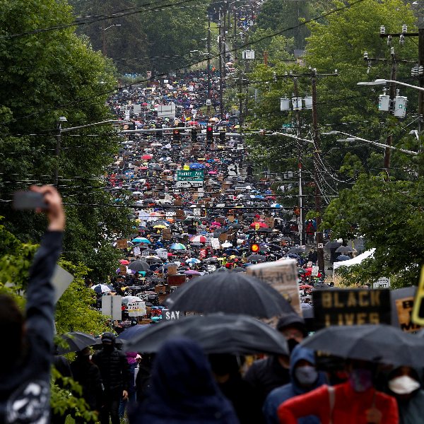 Seattle'da toplanan yaklaşık 60 bin kişi, yağmurlu havaya rağmen ellerinde şemsiyeyle ülkede siyahilere karşı tutumu protesto etti. Grubu organize eden Ebony Miranda, gösterileri işaret ederek, "Dünya izliyor." dedi.