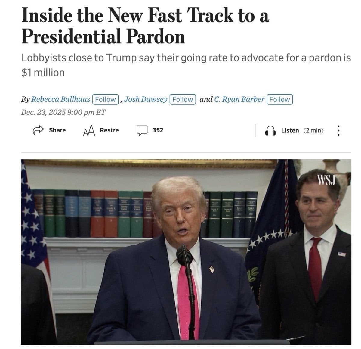 Wall Street Journal (WSJ) makalesinde, insanların para karşılığı başkanlık affı aldıklarını işaret eden iddialar ortaya attı.